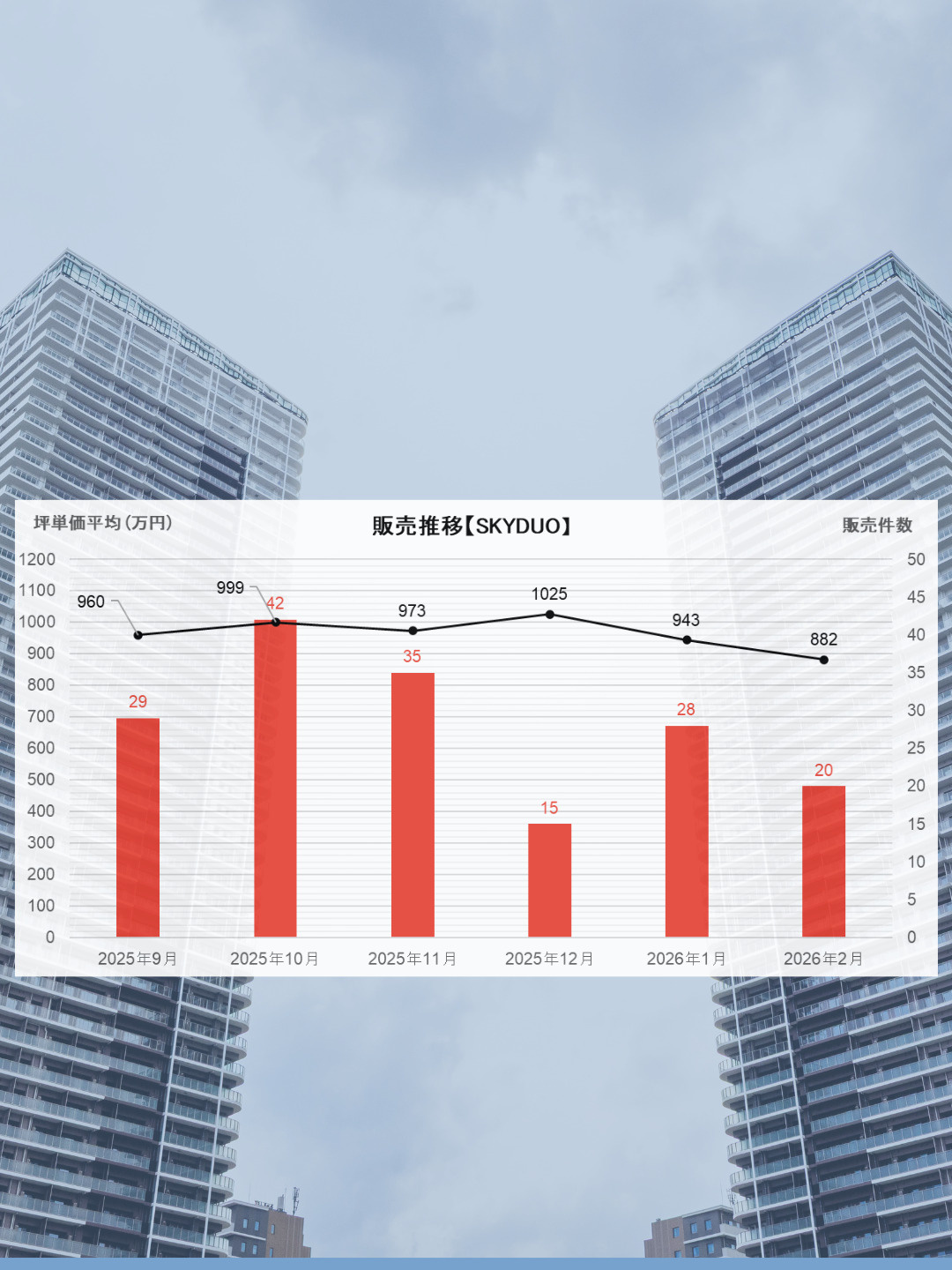 今後も住戸条件や価格設定によって販売状況には差が生じる可能性はあるものの、高層階や角住戸など付加価値の高い住戸を中心に、SKY DUOに対する需要は引き続き底堅く推移すると考えられます。